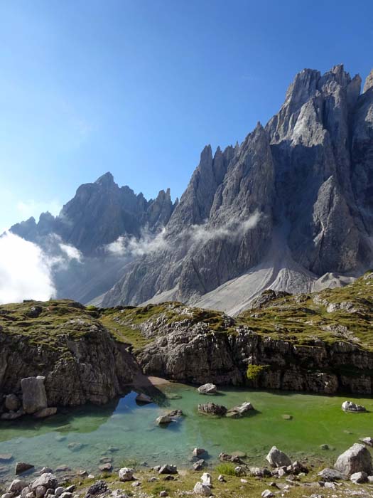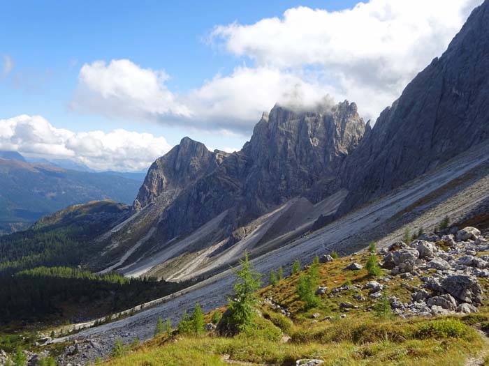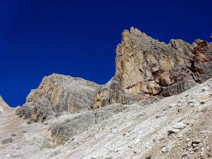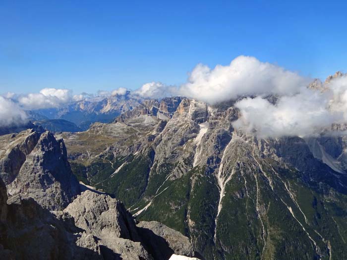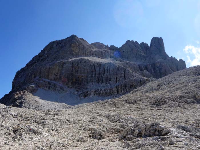 ÜbersichtKarteam Nordgipfel der Sextner Rotwand, der Hauptgipfel (links hinten) ist 29 m höher, allerdings nur kletternd erreichbar