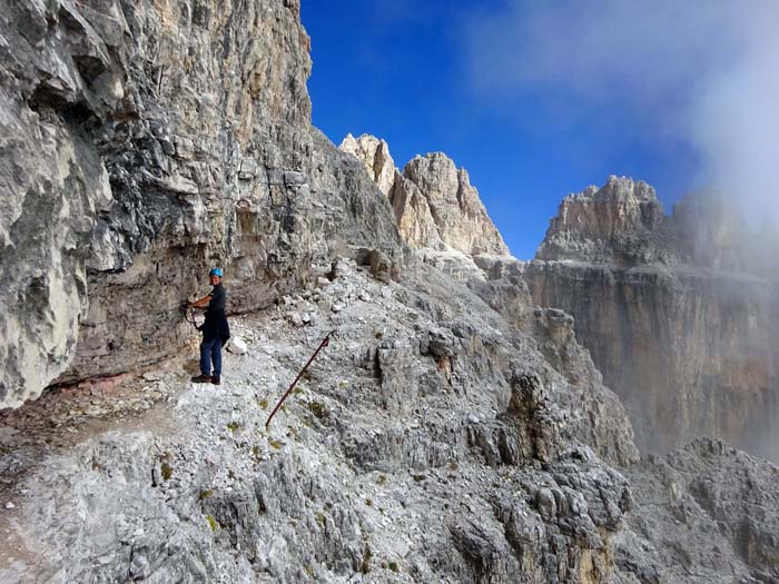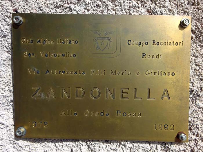 Literatur: z. B. Zahel: Klettersteigführer Dolomiten, Brenta, Gardasee. München: Bergverlag Rother 2023.