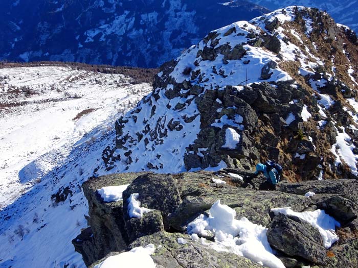 Etwas höhere Anforderungen stellt der benachbarte Parallelgrat über die Türme der Garnitzen jenseits des Rossbichlbodens.