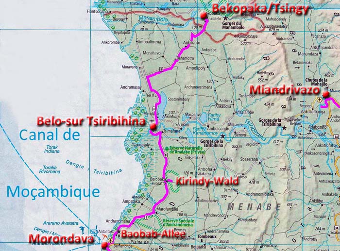 Von Bekopaka über Belo-sur-Tsiribihina nach Morondava, Westmadagaskar.