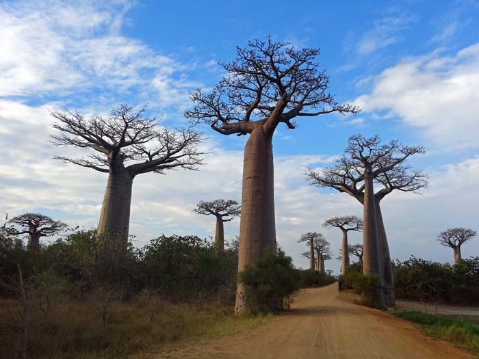 Nach dem Klettersteig-Abenteuer in den Großen Tsingy erwarten uns in den nächsten beiden Tagen gut 200 km raue Pisten mit zwei Flussüberquerungen auf (noch) motorbetriebenen Katamaran-Fähren. Für Tierbeobachtungen zur Tages- und Nachtzeit im artenreichen Trockenwald übernachten wir in einer komfortablen Lodge am Kirindywald und passieren anderntags die berühmte Baobaballee nordöstlich von Morondava, dem drittgrößten Hafen an der madagassischen Westküste. Die schnurgeraden Reihen der prächtigen Affenbrotbäume - nicht von Gärtnern angelegt, sondern eine Laune der Natur – sind nicht nur quasi Pilgerziel vieler Touristen, sondern auch für betuchte Madagassen, welche sich die doch etwas komplizierte Anreise leisten können.
