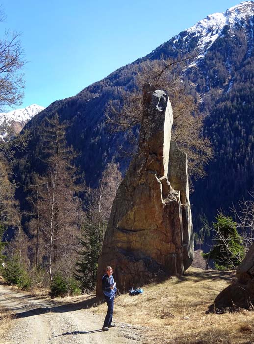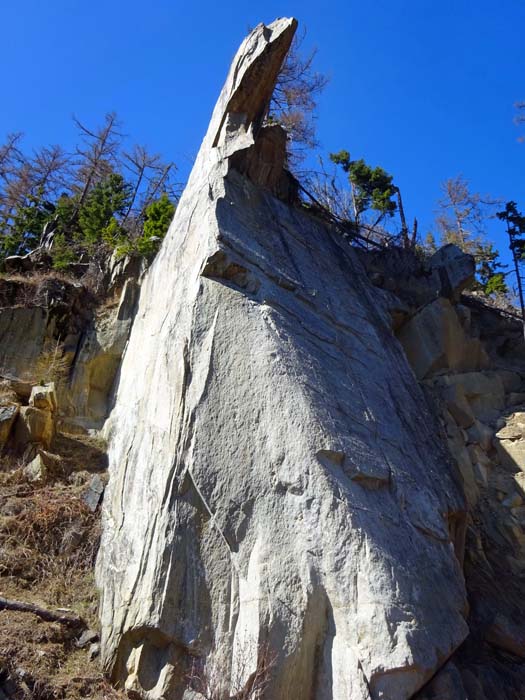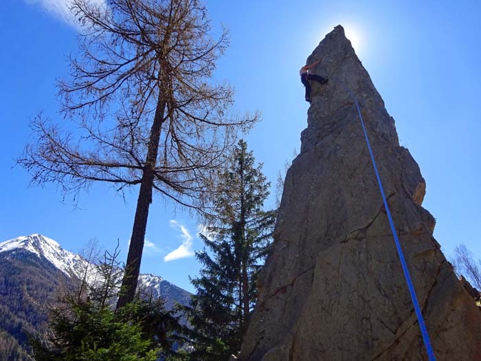 Das kleine, aber feine Klettergebiet liegt etwa 20 km nordwestlich von Lienz und ist umringt von gleich fünf Gebirgsmassiven der Hohen Tauern, nämlich Venediger-, Granatspitz-, Glockner- und Schobergruppe sowie den Villgratner Bergen (Deferegger Alpen). Ein idealer Platz für ein Familienkletterpicknick mit 8 gut eingerichteten Routen (zwischen 5 und 7) am etwas gemäßigten, frei stehenden, 15 m -„Torre“ und 9 Linien (6 bis 9) an der extremen „Nase“, einem 30 m hohen spiegelglatten, stumpfkantigen Felspfeiler mit gewaltigem Abschlussüberhang. Aufgrund der sonnigen Aussichtslage kann es im Sommer manchmal zu heiß zum Klettern werden.