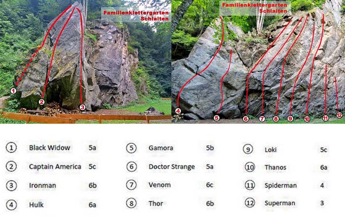 Schlaiten, AV-Familienklettergarten, 3 – 6c