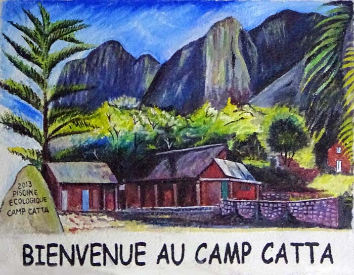 ÜbersichtKarte UmgebungSkizze CaméléonWillkommensplakat am Camp; links der gewaltigen Tsaranoro-Wände ...... steht unser erstes Ziel im Andringitra-Gebirge: das Caméléon, hier mit seiner Nordwestwand
