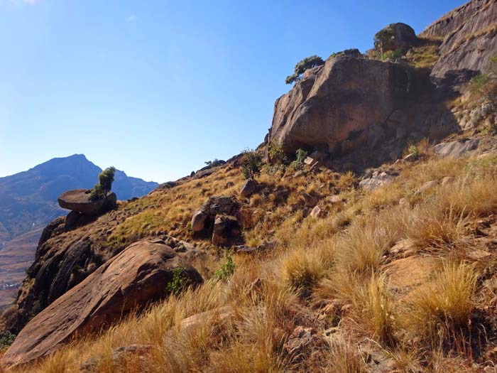 Andringitra-Gebirge, Provinz Fianarantsoa, Andonaka, Madagaskar. Aufstieg 700 Hm.