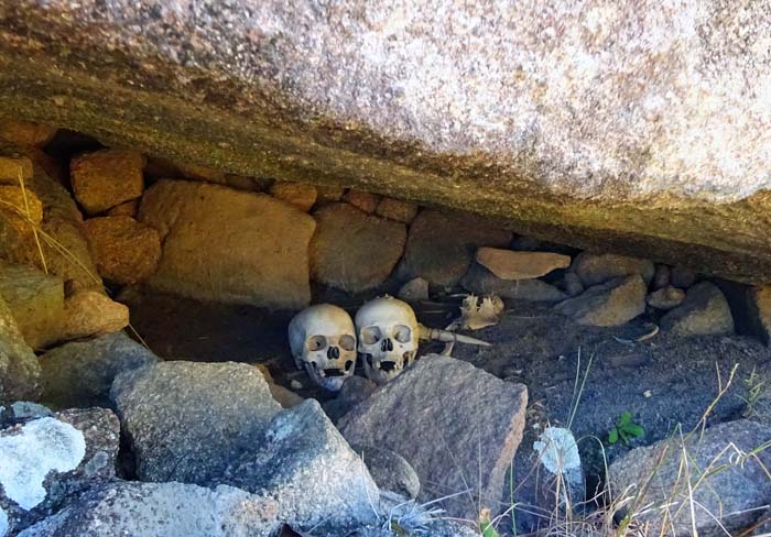 Auf dem Rückweg ins Camp zeigt uns Emmanuel eine makabre Gedenkstätte zur Abschreckung der räuberischen Nachbarn (s. Bildteil).