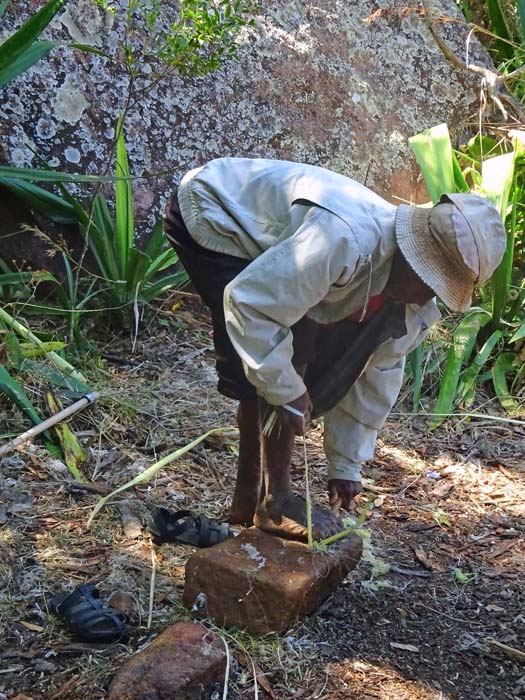 Unser junger Führer erzählt uns am Caméléon von einem bewaffneten Raubüberfall auf sein Dorf, der noch kaum 20 Jahre zurückliegt. Emmanuel hat noch heute Albträume aus dem Vorfall, der sich praktisch uns zu Füßen abgespielt hat und bei dem ihn sein größerer Bruder in heller Panik auf der Flucht vor den Räubern in den Wald zerrte. Der Angriff konnte damals nur mithilfe eines zugereisten Franzosen abgeschlagen werden, der über die effektivere Schusswaffe verfügte und seinen Nachbarn zu Hilfe eilte. Man schaltete anschließend Polizei und Militär ein, um den Chef der Bande ausfindig zu machen. Nachdem alle Bewohner der umliegenden Dörfer einhellig einen Haupttäter benannt hatten, wurde dieser unsanft ins Betsileodorf verfrachtet und sogleich am Dorfplatz erschossen. Begründung: Im Gefängnis hätte sich der Delinquent aufgrund seines bislang angehäuften Reichtums (ein Zebu entspricht etwa einem durchschnittlichen Jahresverdienst) innerhalb kürzester Zeit durch Bestechung freigekauft und das Spiel hätte von Neuem begonnen.