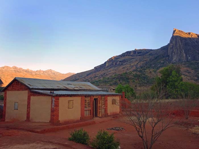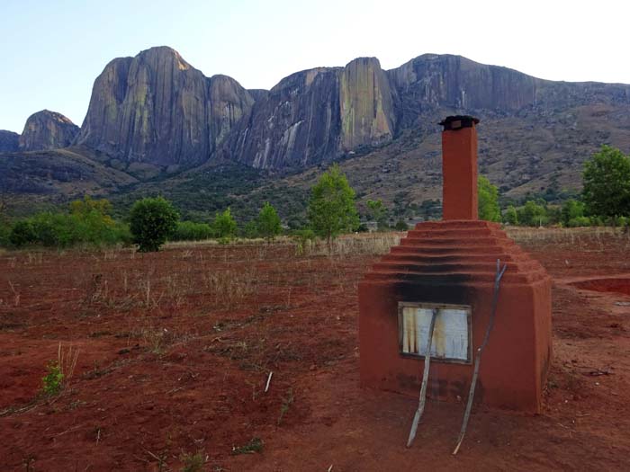 Am Abend hat uns Emmanuels Mama in ihrem Haus hervorragend bekocht. Nachdem wir heute den lokalen Gebräuchen Folge geleistet haben, möchten wir morgen in aller Früh ins große Gebirg allein losziehen. So sind wir’s gewohnt, und so wird es auch stillschweigend geduldet, wenn man es nicht an die große Glocke hängt; die extremen Kletterrouten des Gebiets werden ja auch ohne einheimischen Führer gemacht. Bis dato existieren keine genauen Karten oder verlässliche Führerliteratur, was führerloses Gehen einerseits sehr abenteuerlich macht, andererseits aber auch die Erfolgsquote empfindlich senken kann. Die Rückseite des Tsaranoro ist nämlich auch nicht gerade zahm …