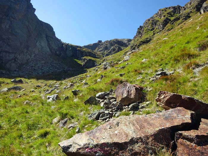 Diese Bemerkungen im alten AV-Führer von Walter Mair aus dem Jahr 1979 geben eine realitätsnahe Einstimmung auf die folgende Tour in eines der abgelegensten Reviere dieser ohnehin einsamen Berggruppe der Hohen Tauern. Den meisten Einheimischen ist das Prititschkar mit seinen fantastischen Seen zu Füßen himmelstrebender Urgesteinsberge nicht einmal dem Namen nach bekannt. Das war nicht immer so: In den mittleren Lagen der ausgedehnten Flanken und Karmulden stößt man immer wieder auf die Grundmauern längst verfallener Almen und Unterstände von Hirten und Jägern. Ein hoch gelegener, vor dem Bau der Wangenitzseehütte benützter Zugang verfiel, wurde erneut ausgebaut und markiert und gerät gerade wieder in Vergessenheit. Die weit gesetzten Markierungen verblassen, vereinzelte Steigspuren stammen von Schafen oder Wild. Und dann trifft man doch östlich der Unteren Prititschscharte unvermittelt auf geklebte Stahlseilversicherungen. Ambitionierte Idealisten versuchen offenbar immer wieder, den Zugang zu diesem Ende der Welt zu erleichtern, angesichts dieser Dimensionen gerät der menschliche Atem aber schnell zu kurz.