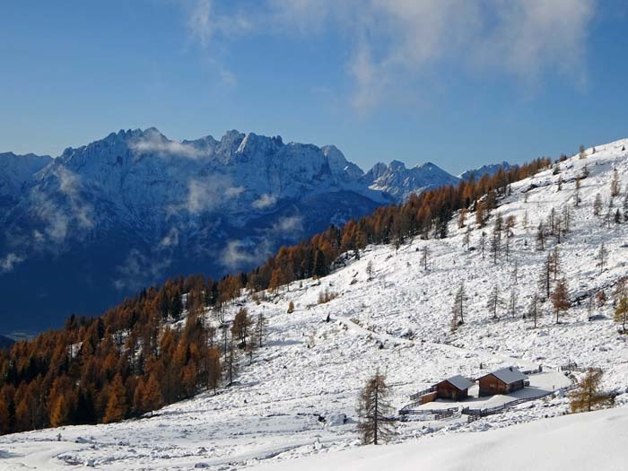 Um uns mit dem ersten Schnee vertraut zu machen und Anregungen für die kommende Schitourensaison zu holen, haben wir uns zu den abgelegenen, aber traumhaften Karen zwischen Strasskopf und Mulleter Seichenkopf aufgemacht. Auf einer kaum begangenen Himmelstreppe zwischen Strassboden und Rossbichlboden sind wir auf alpin angehauchte Leckerbissen gestoßen, samt Gipfeleisfeld und Biancograt en miniature, und haben erkannt, dass die winterliche Schobergruppe gar nicht so weit vom Himalaya entfernt ist.