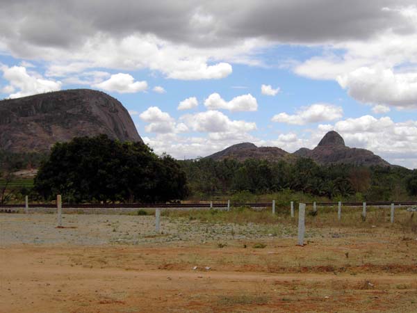 Kurz vor der Landung in Bangalore lässt der Anblick der Nandi Hills Klettererherzen höher schlagen. Sie befinden sich ca. 20 km nördlich des Flughafens und locken mit einer ganzen Reihe von scheinbar noch völlig unerschlossenen Granitwänden. Die Anfahrt ist vergleichsweise problemlos, die asphaltierte Straße führt über die zahmere Westseite sogar bis kurz unterhalb des Gipfelplateaus, ganz oben ein kleines Hotel.