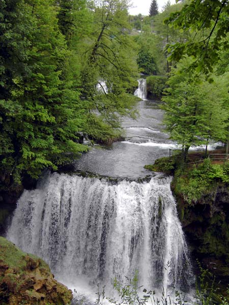 Kroatien, 120 km ssw. Zagreb. Autobahn (gebührenpflichtig) bis Karlovac, dann auf der gut ausgebauten Nationalstraße 1 (E59/71) vorbei an den Wasserfällen von Slunj (bei uns bekannt durch den gleichnamigen letzten Roman von Doderer), netter Vorgeschmack auf den Nationalpark. Hotels an den beiden offiziellen Eingängen, jede Menge Privatzimmer in der Umgebung.
