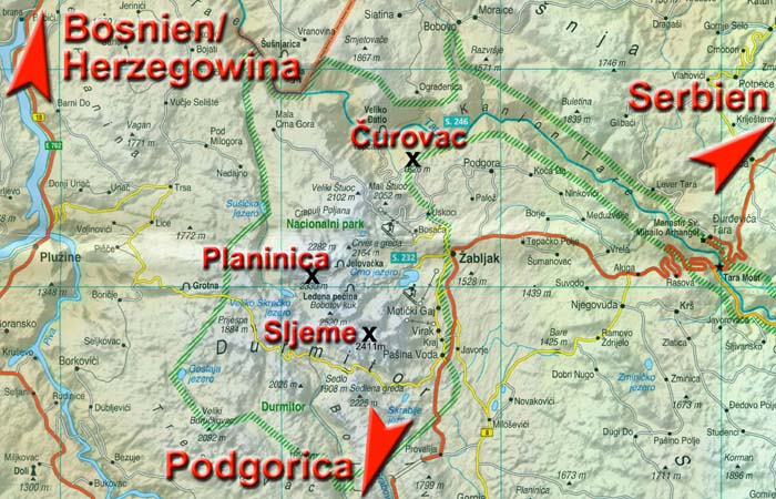 Karte: Durmitor 1:50.000, erhältlich vor Ort oder z. B. bei Freytag&Berndt, Wien.