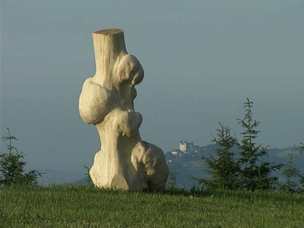 b) Gerade weiter, rechts (nördlich) am Hof Hinterhirschberg vorbei (Weg Nummer 12) in Kammnähe hinunter zum Hof Tagberg und dem Güterweg links folgend zum Hof Kasten (an der Straßenverbindung Konradsheim – Ertl). Von hier aus erreicht man in wenigen Minuten das Donatusbrünndl mit Kapelle, dem Ziel einer alljährlichen Bittprozession. Die angebliche Heilkraft des Wassers lockt auch heute noch zahlreiche Besucher aus nah und fern zur Quelle. Hinter der Kapelle setzt sich der Weg quer durch die Nordflanke des Hochkogel fort, um sich auf der Kammhöhe mit Weg Nummer 11 und dem Weitwanderweg 04 zu vereinen.