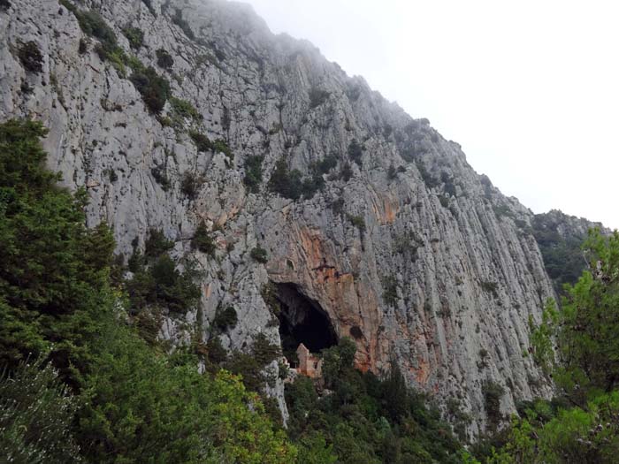 Bei einem Adria-Gipfel-Contest müsste die Jury eine Vielzahl reizvoller Attribute abwägen: Neben der obligaten Traumsicht auf versteckte Inselbuchten und wilde Gebirge an den benachbarten Festlandküsten finden sich idyllische Weingärten am Bergfuß hier, legendäre Verstecke von Piraten oder Heerführern dort, uralte romantische Ziehwege auf raue Plateaus mit interessanter Vegetation, kulturell bedeutsame Höhlenklöster und einiges mehr. Am Sveti Nikola können obergescheite Juroren nicht lang herummeckern und sehen sich gezwungen, gleich alle Rubriken ihrer Wertungsliste mit einem Häkchen zu versehen. Selbst das Höhlenkloster ist hier nicht irgendwo im weiten Umland zu suchen, sondern direkt am Fuß der Gipfelwand, weithin sichtbar und auf dem kürzesten Weg vom Meer in den Himmel.