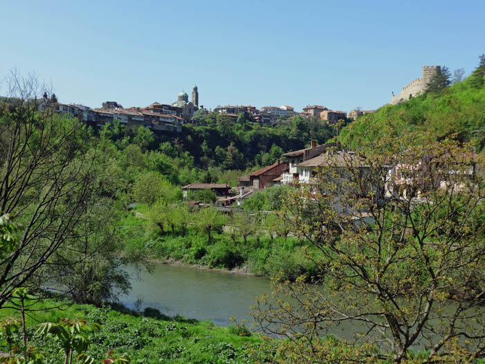 einen leicht verregneten Tag beenden wir in der Altstadt von Ruse, der Perle Nordbulgariens; mehr als 200 Gebäude im Wiener Sezessionsstil stehen hier unter Denkmalschutzbereits im Neolithikum war das Gebiet bewohnt, unter den Thrakern, Römern und Osmanen wuchs Ruse zum größten Donauhafen Bulgariens heran. Die unzähligen Jugendstilhäuser - wie hier rund um den Battenbergplatz - haben der Stadt den Beinamen „Klein Wien“ eingebrachtzum halben Preis eines durchschnittlichen mitteleuropäischen Lokals wird beispielsweise im Restaurant Chiflika neben der Fußgängerzone vorzügliche bulgarische Küche in Landestracht aufgetragenanderntags hat es ausgeregnet und wir beginnen im nur wenige Kilometer südlich gelegenen Dorf Basarbovo unseren Streifzug durch den Naturpark Rusenski Lomdas aus dem 12. Jh. stammende Höhlenkloster wird seit 1937 wieder als solches genutztüber eine Steintreppe gelangt man die steile Felswand empor, ...... in welche die höhlenartige Kirche perfekt integriert istetwas weiter südlich gräbt sich der Fluss immer tiefer in die Landschafthoch oben in den senkrechten Wänden ...... sind eine größere Anzahl von Felsenkirchen verborgen, die man auf verschiedenen Wanderungen miteinander verbinden kanndie berühmteste, die Kirche der Heiligen Mutter Gottes, etwa 4 km östlich des Dorfes Ivanovo, gehört aufgrund ihrer Wandmalereien zum UNESCO-Weltkulturerbe; sie versteckt sich im Innern des senkrechten Felspfeilers rechtsdurch Freigraben dieses Spalts wurde die Höhle erst im 20. Jh. quasi von hinten geöffnetzuvor war die Felsenkirche nur per Seilzug von außen über die Schwindel erregende Höhe zu erreichenwieder einige Flussmäander weiter südlich treffen wir auf den nächsten Höhepunkt des Naturparks: das romantisch gelegene mittelalterliche Dorf Cherven mit seiner Bergfestung (links)über lange Treppenfluchten erklimmt man ...das Plateau westlich des DorfesRückblick auf den ParkplatzRekonstruktion der Festung und des städtischen Bereichs (hinten)Festungsgelände gegen N auf die felsigen Flussmäander Richtung IvanovoTiefblick auf Chervendas Fort stammt aus dem 13. Jh. und war zur Zeit des Zweiten Bulgarenreichs strategisch bedeutsam; vorne die Grundmauern einer Kirche, hinten rechts ...... die Reste eines 12 m hohen Festungsturms, ...... der verhältnismäßig gut erhalten ist; die Holzbrücke führt herüber in den städtischen Bereichdie abgelegene Ortschaft Tabachka ist umringt von interessanten Kletterfelsen, ... ... Erich in der genussvollen Löcherplatte von Dupkata na gushtera 6a+Erlebnispädagogik - rund um die Uhrvon der Donau bis an den Fuß des zentralen Balkangebirges: hinten links dessen höchster Gipfel, der schneebedeckte Botev, davor Veliko Tarnovo6 km vor der Stadt: das Dreifaltigkeitskloster im Schatten einer kilometerlangen Wandflucht (mit ca. 150 eingebohrten Kletterrouten)die bezaubernde Altstadt von Veliko Tarnovo über den Windungen des Flusses Yantradie Bischofsbrücke am nö. Stadtrand; links hinten geht's zum Dreifaltigkeitskloster, rechts oben liegt das berühmte Museumsdorf ArbanasiBlick vom Zentrum gegen O zur Tsarevets-Festung