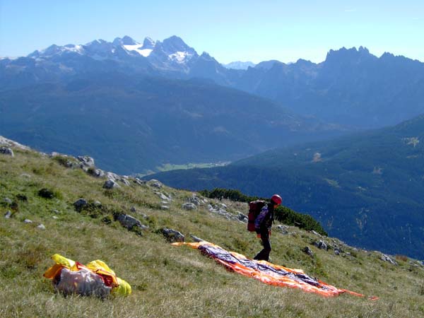 Bei geeignetem Wetter bietet sich das Gamsfeld als perfekter Flugberg für Einsteiger an. Selten findet man solch einen idealen Startpunkt für einen übersichtlichen Flug in alpinem Gelände, auch bei der Landung unweit des Ausgangspunktes ist wirklich mehr als genug Platz vorhanden.