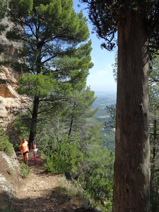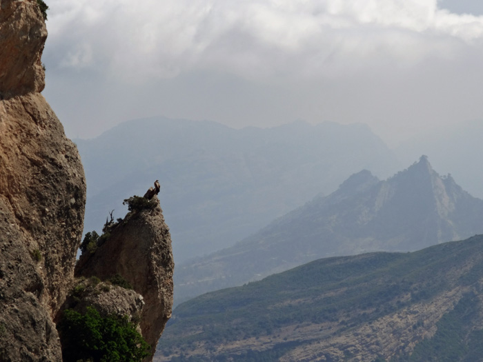 Der Pilgerweg vom Kloster entlang der steilen Nordwände auf die Rückseite und vorbei an verlassenen Einsiedeleien und Wehrbauten aus dem Spanischen Bürgerkrieg zur Höhe entpuppt sich als geschickte Steiganlage durch die abschreckenden Wandfluchten. Neben den landschaftlichen Eindrücken hat man ständig die Flugkünste der Geier vor Augen, welche hoch über uns in exponierten, unzugänglichen Horsten nisten.