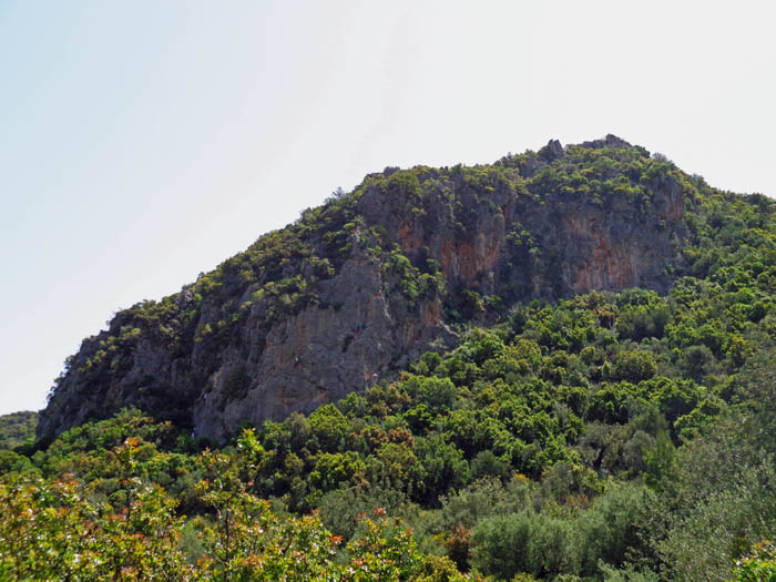 Neben Kálymnos ist in den letzten Jahren drei Autostunden von Athen ein weiterer aufstrebender Stern im griechischen Kletterhimmel entstanden - ein breites, fruchtbares Tal, vom griechischen Reisenden Pausanias als „Garten des Dionysos“ besungen, gesäumt von gewaltigen feurigen Felswänden. Die Tsakonier, die frühesten bekannten Siedler in diesem Zaubergarten, bevölkerten bereits zur Blütezeit Mykénes den spektakulären Canyon des Daphnón. In den ersten dreieinhalb Jahren der jungen Klettergeschichte wurden hier fast 1000 Routen eingebohrt, die sich bislang verdoppelt haben. Die Kunde des neuen Hotspots hat sich in Windeseile verbreitet, die Entwicklung der Infrastruktur sich im Vergleich zum nicht bekletterten Umland überschlagen. Nicht jeder schätzt den gewissen damit verbundenen Rummel, der zu keiner Jahreszeit ganz verstummen will. Das Gebiet ist aber groß genug (derzeit 61 Sektoren rund um Leonídio), an den Felsen mit längeren Zustiegen kann man immer noch allein sein, wenn man das will.