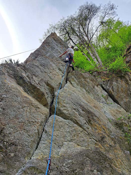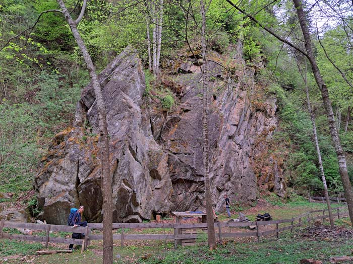 Die AV-Sektion Lienz hat an diesem eher unscheinbaren Felsen am Fuß der Villgratner Berge einen ein kleines, familienfreundliches Klettergebiet geschaffen, welches wesentlich mehr Freude macht als es zunächst den Anschein hat. 12 Routen, von einer kurzen Anfängertour bis zu zwei heftigen Kanten im oberen 6. Franzosengrad, füllen in höchst angenehmer Weise zumindest einen halben Klettertag – oder auch einen ganzen, wenn das Unternehmen gar in ein Familienkletterpicknick à la Südfrankreich ausarten sollte. Die bis zu 20 m hohen Felsen werden überdies von einem Klettersteig eingerahmt. Bitte auf dem paradiesischen Plätzchen keinen Müll hinterlassen, wir haben vor zwei Wochen am Iseltrail allein zwischen Lienz und Matrei sechs prall gefüllte Einkaufstaschen davon eingesammelt. -