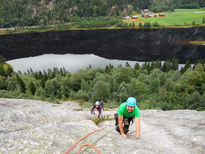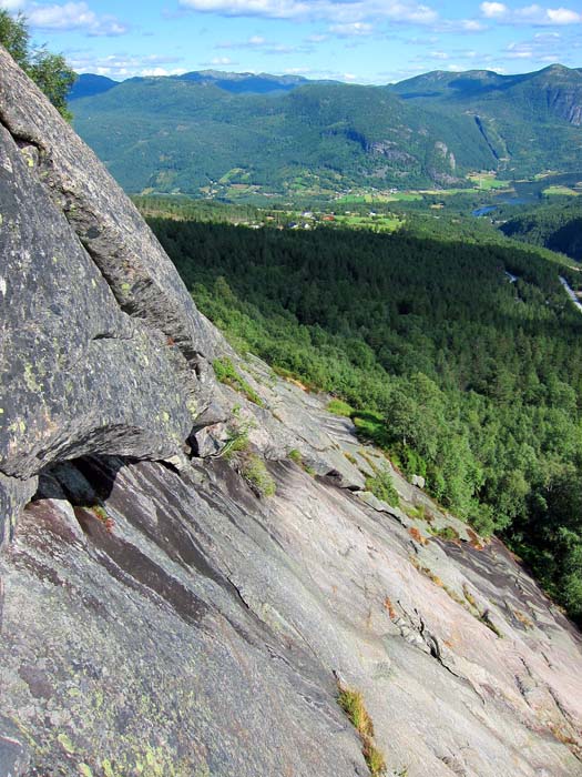 Speziell für norddeutsche Kletterer ist das Setesdal ein Geschenk, viel näher als die alpinen Klettergebiete. Seit Jahrzehnten erschließen hier Deutsche unermüdlich Route für Route, mittlerweile existieren über 500 Wege bis zu 18 Seillängen, von Klettergarten- bis Bigwallformat. Nirgendwo in Nordeuropa ist die Bohrhakendichte größer, obwohl man wegen der teilweise weiten Abstände keinesfalls von einem Plaisirgebiet sprechen kann. An die ungewohnte Aufbereitung der Routenkopfinfos im Führer gewöhnt man sich schnell. Anders als in den Alpen ist auch die generelle Ausrichtung auf 60-m-Seillängen, also unbedingt mit Doppelseil anreisen, topropen mit zwei Einfachseilen ist eine Plackerei. Das Wetter im Tal kann immer wieder für Überraschungen sorgen, ein Rückzug aus Mehrseillängenrouten ist nie wirklich auszuschließen - auch in so einem Fall schaut man mit einem Einfachseil alt aus (wir verweisen auf unser seltsames Erlebnis am Nomelandsfjellet).