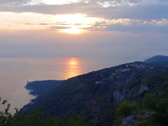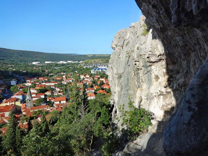 Übersichtblaues Meer, grüne Küsten und malerisches Hinterland mit interessanten Kletterfelsen - all das und noch viel mehr bietet die Hafenstadt Triest; hier von der Vedetta, einem der vielen Sektoren des Klettergebiets Napoleonica bei Prosecco, wenige Kilometer nördlich des Stadtzentrumsnur fünf Kilometer entfernt von den Hafencafés ein völlig anderes Landschaftsbild: das Klettergebiet Val Rosandra von Norden (San Lorenzo)