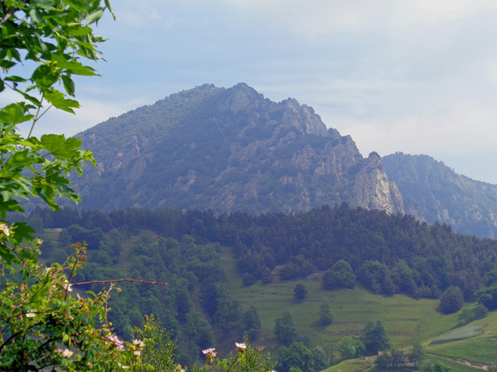 Aus der Südflanke des bewaldeten Monte Freidour, 1445 m, zwischen Valle di Chisone und Valle di Susa ragen etliche wilde Zähne und Pfeiler aus bestem Granit, an denen in den 70er-Jahren des vorigen Jahrhunderts die klettertechnische Erschließung begann - ausgelöst durch illustre Namen wie Gervasutti, Monti und Armando. Heute ist in der Literatur vom „schönsten Klettergebiet Oberitaliens“ die Rede. Wir haben uns auf der Heimreise von unserer Iberienrunde aus dem großen Routenangebot - darunter ein absoluter Klassiker, die Via Michelin-Bocco, 6b (5c+ A0) mit 17 Seillängen - die Via Torinesi herausgepickt. Der Zufall (die geplante Via Normale, 4b gleich daneben war von einem italienischen Pärchen besetzt) hat uns eine spannende und doch irgendwie legere Nachmittagsbeschäftigung zugespielt; zum Ausklang ein gemütlicher Stadtbummel draußen in Pinerolo.