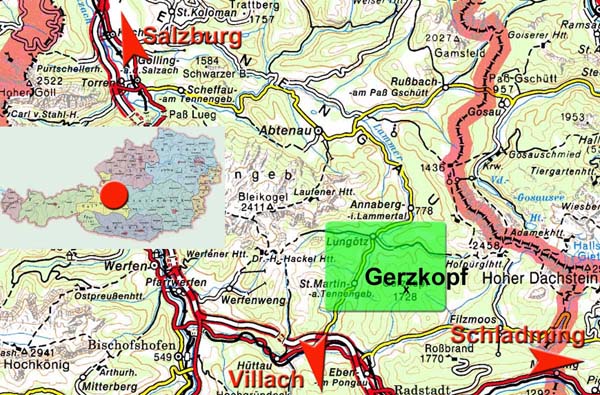 Der Gerzkopf steht in keinem Schitourenatlas. Die ÖK-Karte täuscht weitläufiges, durchwegs bewaldetes und für Bergsteiger richtig uninteressantes Niemandsland vor. Wer also soll sich bitte gerade hierher verirren - angesichts der alpinen Tourenziele im Tennengebirge oder der rassigen Steilrinnen am Gosaukamm?