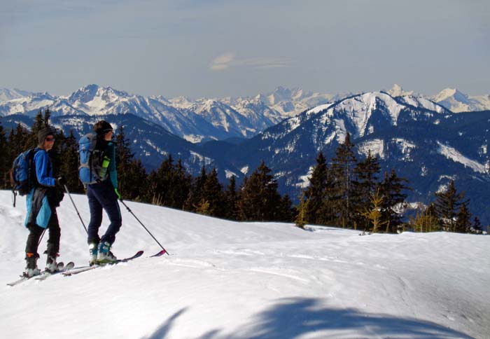 Am direkten Sporn von der Sessellift-Bergstation hinauf zum Maißzipf zieht eine elegante Abfahrtsspur durchs verwachsene Gehölz. 150 Hm weiter oben kommt von rechts ein Ziehweg herauf (viel vernünftiger, erreichbar durch kurze Forststraßenquerung ab Bergstation), und plötzlich herrschen beinahe pistenartige Verhältnisse. Was geht hier ab, die Wallfahrt einer einheimischen Schisekte? Nicht weiter störend, im umliegenden Märchenwald gibt's bei bestem Pulver genug Platz für die anschließenden Abfahrtsfreuden. Spätestens bei der Gerzkopfhütte ist man sich sicher, soeben einem Geheimtipp auf die Spur gekommen zu sein: ein weites Hochplateau, kaum Bäume, dafür sagenhafte Aussicht. Frech aufgesetzt die beachtlich steile Gipfelkuppe mit Kreuz und einer szenisch wohlplatzierten Glocke - wie in einer japanischen Tempelanlage.