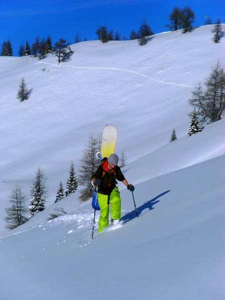 Links zu weiteren empfehlenswerten Schitouren in der unmittelbaren Umgebung findest Du im Anhang unserer Tour aufs Wildkarlegg, nähere Details über den selbst gebastelten Tourenschlitten sowie seine Einsatzmöglichkeiten im Anhang unserer Tour auf den Kuhberg.