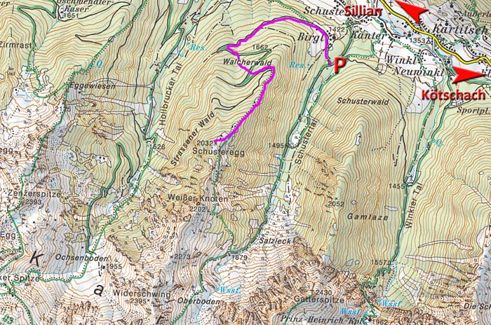 Schusteregg: Birgl – Forststraße Walcherwald – NNO-Kamm.